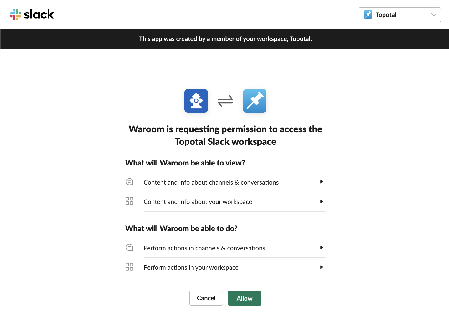 Slack と Waroom を連携することで様々な便利な機能を利用することができます。
