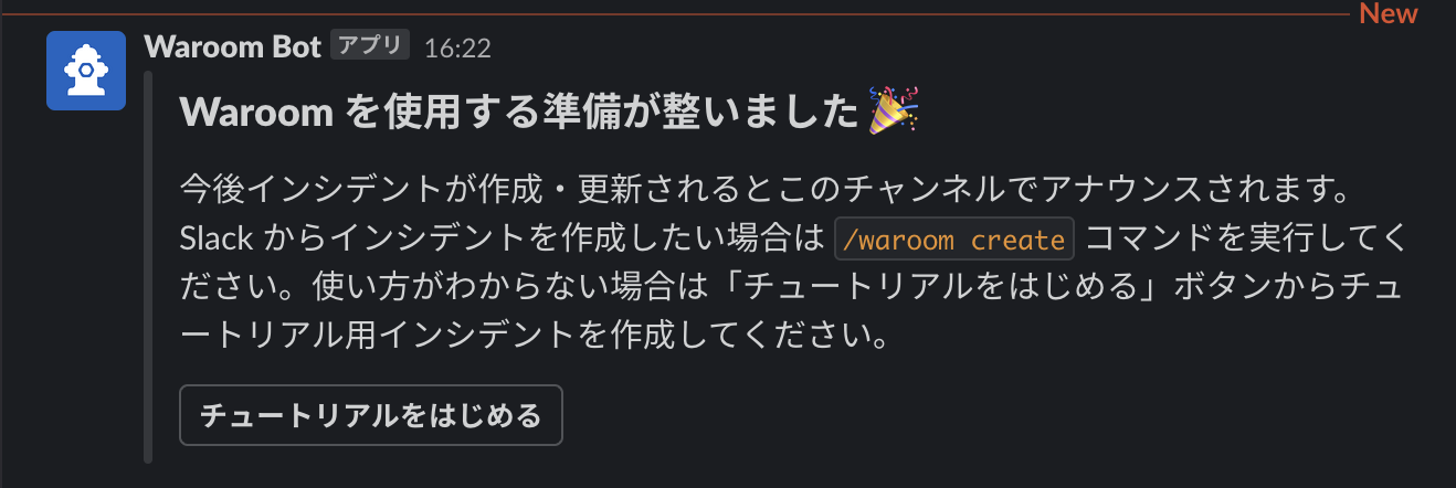 指定したチャンネルに以下の通知が届いていれば設定完了です。