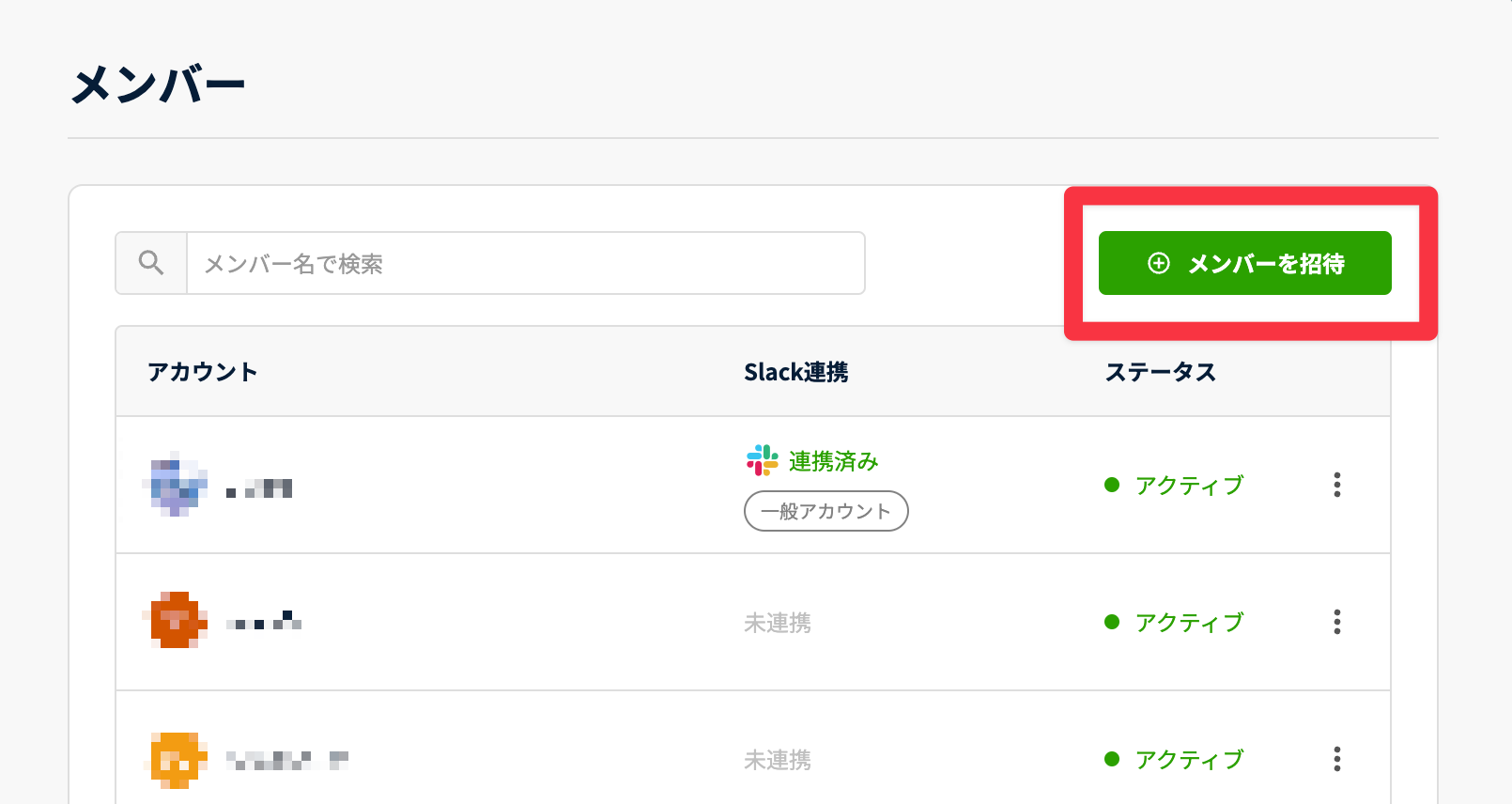 サイドバーの「メンバー」からメンバーの一覧ページにアクセスし「メンバーを招待」ボタンを押してメールアドレスを入力し送信します。