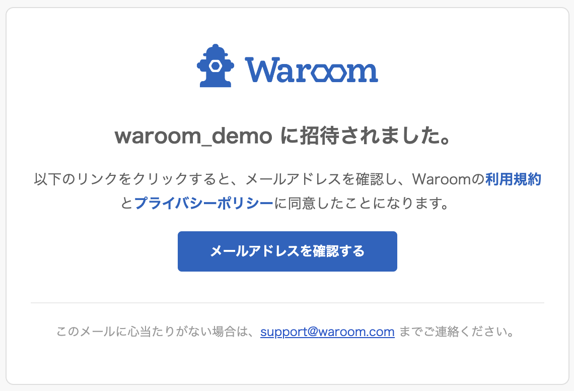 指定したメールアドレスに招待メールが送信されているので、そこから承認をしてもらい Waroom のアカウントを作成してもらいます。