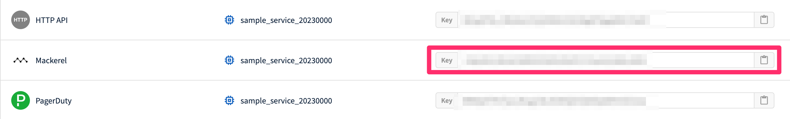 追加した Auto-Trigger Integration の項目に Key が表示されているのでそれをコピーしてください。