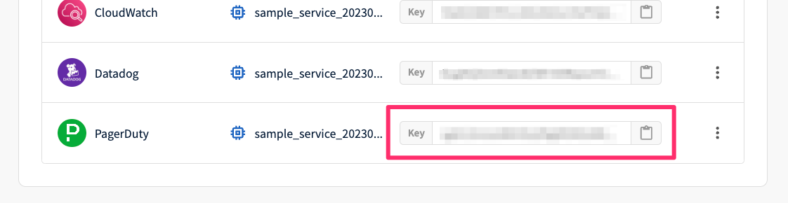 追加した Auto-Trigger Integration の項目に Key が表示されているのでそれをコピーしてください。